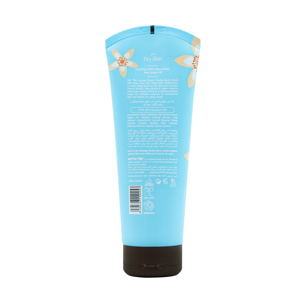 کرم مرطوب کننده بدن ویت یو حاوی عصاره وانیل مناسب پوست خشک حجم ۲۰۰ میلیلیتر