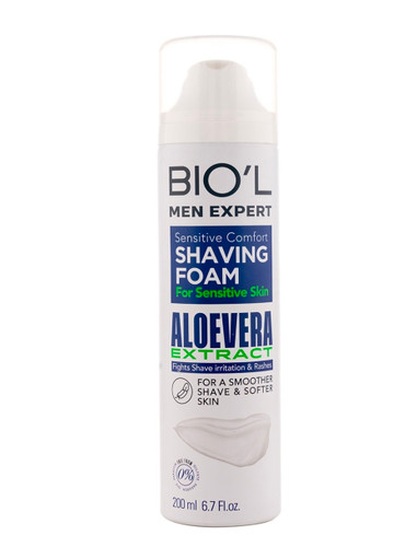 فوم اصلاح مردانه با عصاره آلوئه ورا بیول مناسب پوست حساس حجم ۲۰۰ میلی لیتر
