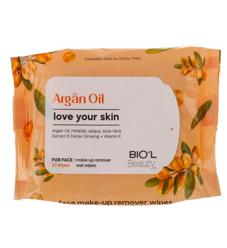 دستمال مرطوب پاک کننده آرایش صورت بیول مدل روغن آرگان بسته ۲۰ عددی