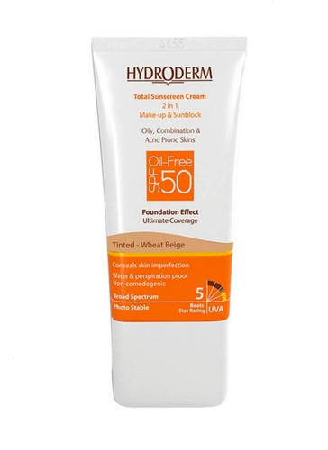 کرم ضد آفتاب فاقد چربی هیدرودرم رنگ بژ گندمی با SPF50 حجم ۵۰ میلی لیتر