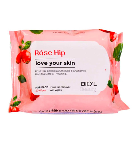 دستمال مرطوب پاک کننده آرایش صورت بیول مدل رزهیپ بسته ۲۰ عددی