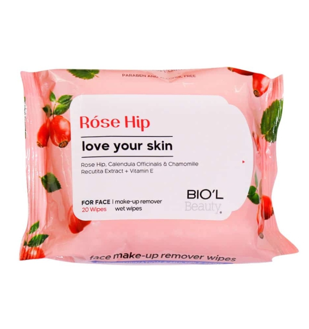 دستمال مرطوب پاک کننده آرایش صورت بیول مدل رزهیپ بسته ۲۰ عددی