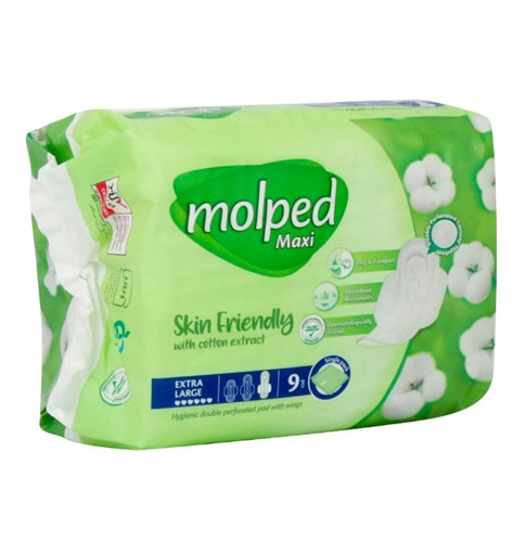 نوار بهداشتی بالدار نیمه ضخیم پنبه ای مولپد سایز خیلی بزرگ 9 عدد ( ۱ کارتن )