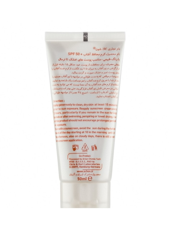 کرم ضد آفتاب رنگی شون مناسب پوست خشک ونرمال +spf50