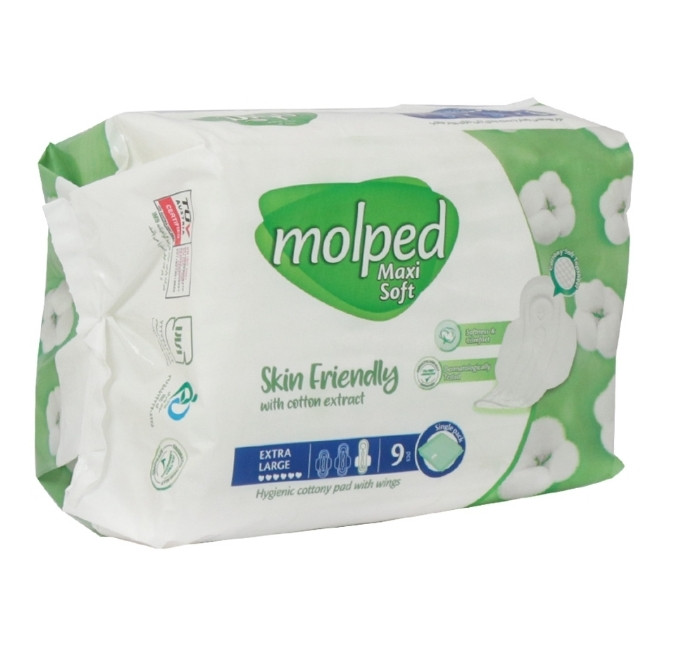 نوار بهداشتی بالدار نیمه ضخیم پنبه ای مولپد سایز خیلی بزرگ 9 عدد ( ۱ کارتن )
