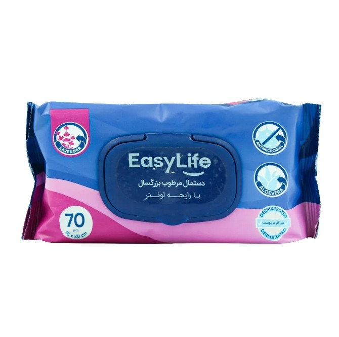 دستمال مرطوب بزرگسال ایزی لایف حاوی عصاره بابونه بسته 70 عددی