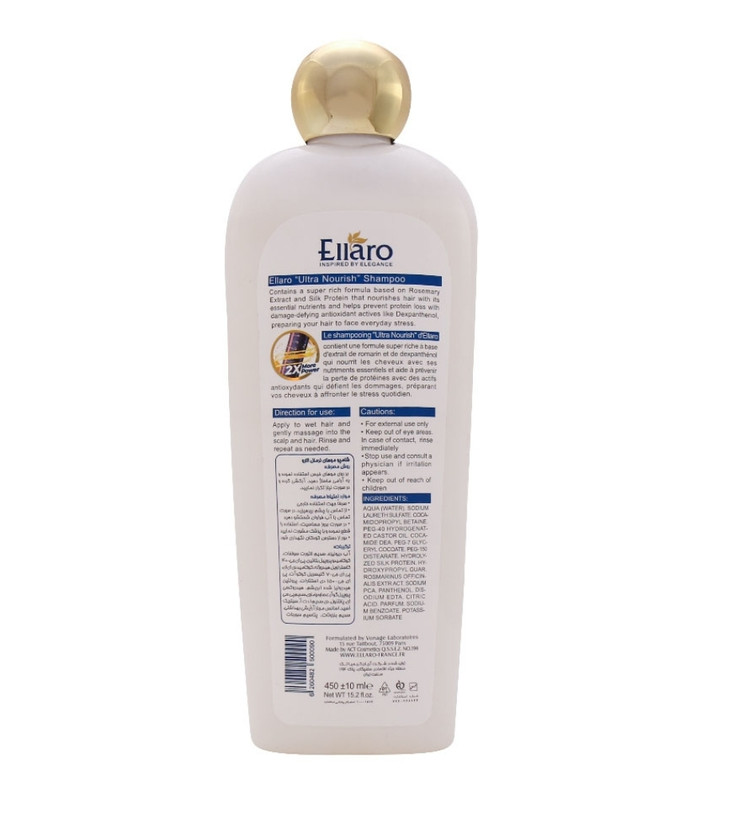 شامپو موهای نرمال اولترا نوریش الارو یک شامپو ملایم مناسب استفاده روزانه است. این محصول به خوبی موهای شما را تغذیه میکند و برای موهای حساس نیز قابل استفاده است. ترکیبات موجود در این محصول شامل پروتئین هیدرولیز شده ابریشم و عصاره رزماری است که خاصیت نرم کنندگی و تغذیه بافت مو را دارد. دکسپانتنول خاصیت آنتی اکسیدان و محافظت از بافت مو نیز دارد.