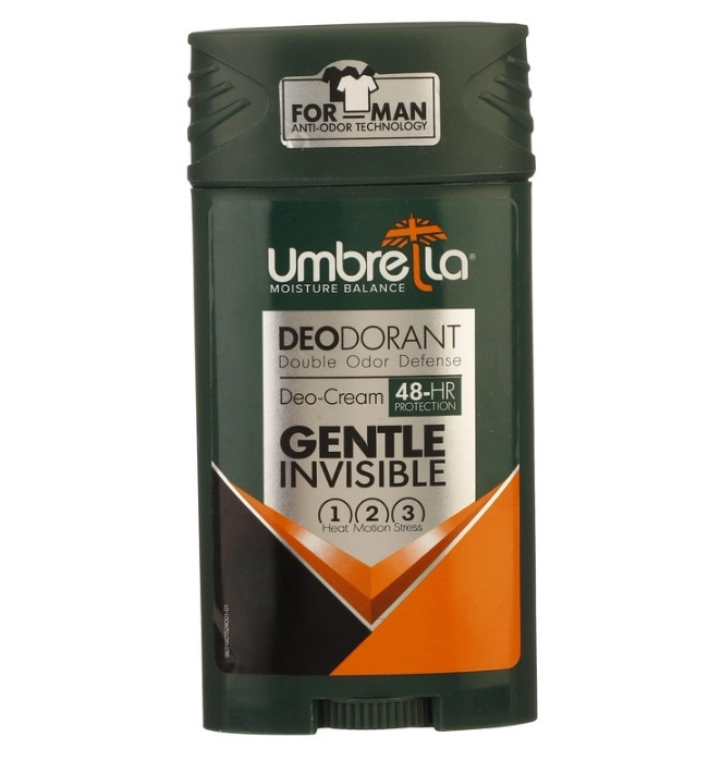 استیک ضد تعریق مردانه آمبرلا مدل جنتل بدون ایجاد حساسیت و با بافت کرمی، محافظت کننده پوست در برابر تعریق و بوی نامطبوع بدن است. این محصول همچنین از خشکی پوست بعد از استفاده جلوگیری میکند.