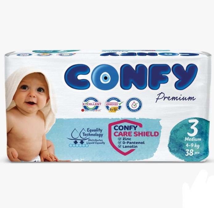 پوشک کودک کانفی سایز ۳ مدل Premium بسته ۳۸ عددی