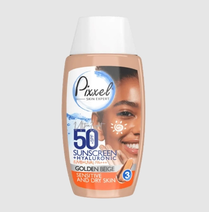 کرم ضدآفتاب SPF50 رنگ بژ طلایی مناسب پوست خشک حجم 50 میل پیکسل