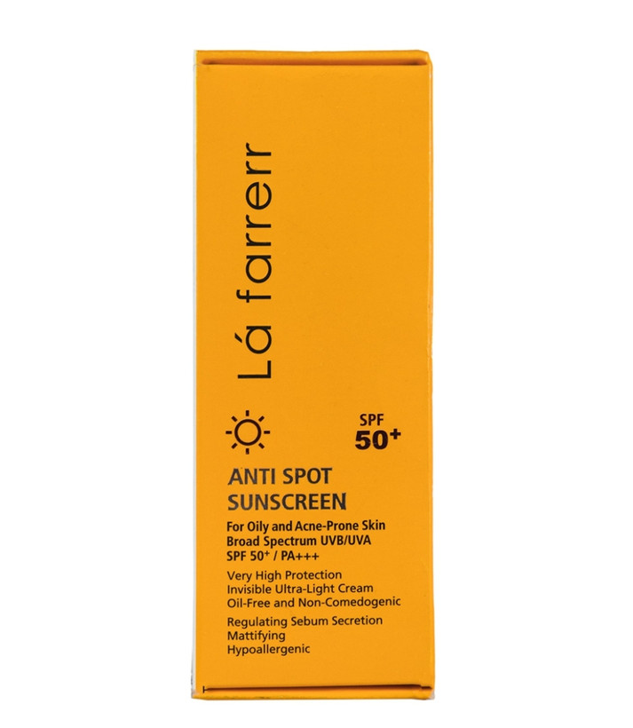ضدآفتاب بیرنگ لافارر پوست چرب طیف گسترده با SPF50، برای پوست های مستعد آکنه فرموله شده است و از پوست در برابر تمامی اشعههای مضر فرابنفش (UVA وUVB) محافظت میکند. ضدآفتاب بیرنگ لافارر پوست چرب با بافتی فوق سبک و بدون چربی از ایجاد لک در پوست های چرب جلوگیری میکند. ضدآفتاب بیرنگ لافارر پوست چرب همچنین با تنظیم ترشح سبوم (چربی پوست)، مانع از بروز کومدون (جوشهای سرسفید و سرسیاه) میشود. ضدآفتاب بیرنگ لافارر پوست چرب خاصیت ماتکنندگی و ضد حساسیت نیز دارد.