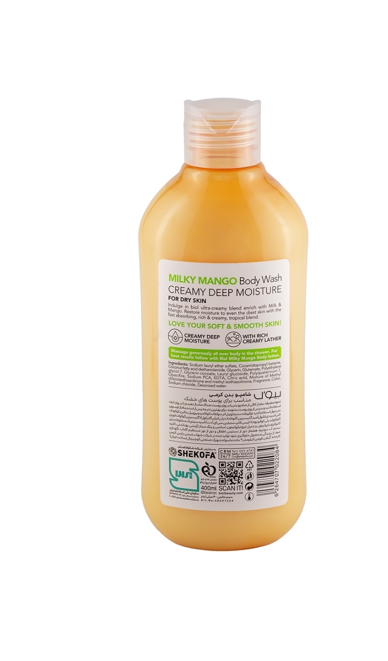 شامپو بدن بیول مدل کرمی شیر و انبه با حجم ۴۰۰ میلیلیتر، یک شوینده ملایم و مغذی است که پوست را بهخوبی تمیز میکند و همزمان حس نرمی و لطافت طبیعی را حفظ مینماید. فرمول کرمی این محصول با عصاره شیر و انبه ترکیبی از تغذیهٔ عمیق و خوشبوکنندگی را ارائه میدهد، مناسب برای استفاده روزانه در حمام.