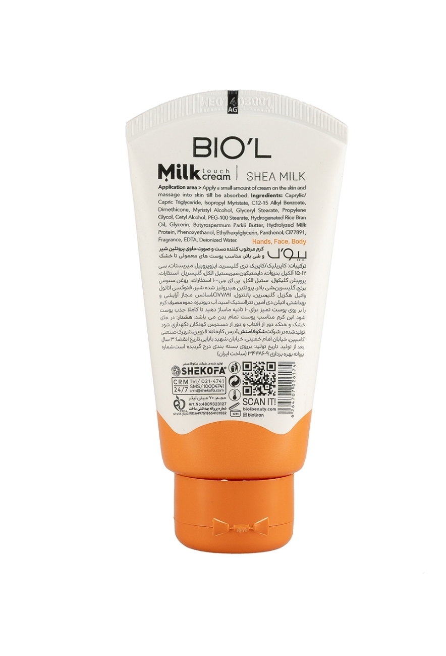 کرم مرطوب کننده حاوی پروتئین شیر و شی باتر بیول مناسب پوست نرمال تا خشک حجم ۷۰ میلی لیتر