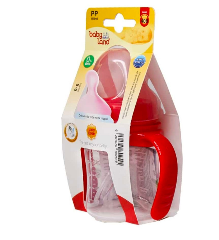 شیشه شیر آنتی کولیک بیبی لند کد 408 حجم 150 میلی لیتر