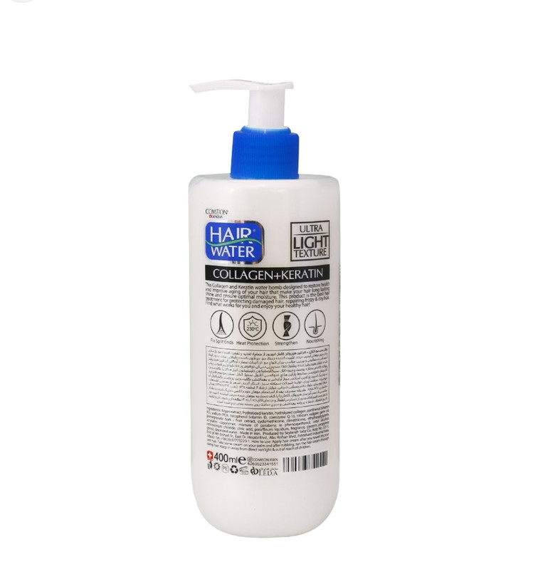 وز شدن، خشکی و تغییر رنگ موها بر اثر حرارت سشوارها یا حالت دهندهها مشکلات شایعی هستند که برای رفع آن باید چارهای اندیشید. واتر بمب کامان، محصولی منحصر به فرد است که با دارا بودن کلاژن و کراتین از موها در برابر آسیب رنگ و خشکی محافظت میکند. واتر بمب کامان، حاوی ترکیبات موثر کراتین هیدرولیز شده و عصاره های جوانه گندم، عصاره آرگان و عصاره پوست و میوه انارکراتین هیدرولیز شده است که در ترمیم و تغزیه مو، آبرسانی به بافت مو جهت رفع وزی و خشکی آن موثر است. یکی از مزایای خرید واتر بمب کامان، جلوگیری از تغییر رنگ موها و کمرنگ شدن آن است. فرمولاسیون این محصول بسیار سبک است و به هیچ عنوان چربی اضافه روی سر احساس نخواهید کرد. کلاژن و کراتین به کار رفته در این محصول، سبب استحکام و تقویت تارهای مو شده و از ایجاد موخوره وشکننده شدن موها جلوگیری میکند