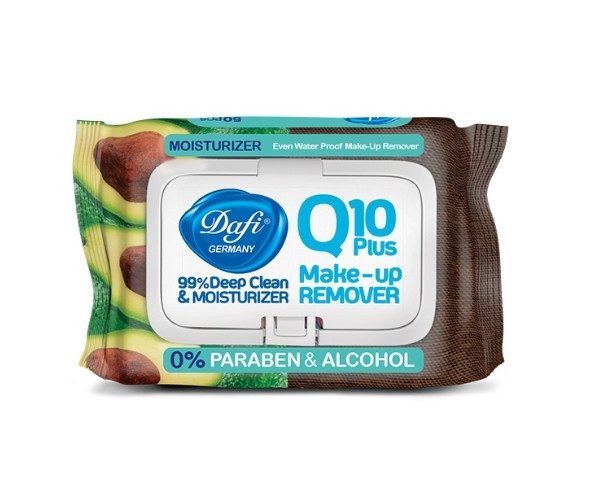 دستمال مرطوب Q10 طرح میوه آووکادو دافی، فاقد الکل، صابون و پارابن بوده و حاوی عصاره آووکادو و اسید آمینههای مفید روشن کننده و سفت کننده پوست میباشد. این دستمال مرطوب آرایش پاککن، همچنین نقش ضدالتهابی داشته و برای صورت و چشم مناسب است. این محصول با قدرت بالا در آبرسانی و پاککنندگی، از ایجاد پیری زودرس و ایجاد منافذ باز ناشی از مواد آرایشی جلوگیری میکند.