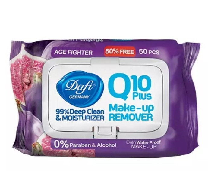 دستمال مرطوب پاک کننده آرایش دافی مدل Q10 (طرح میوه انجیر) بسته ۵۰ عددی