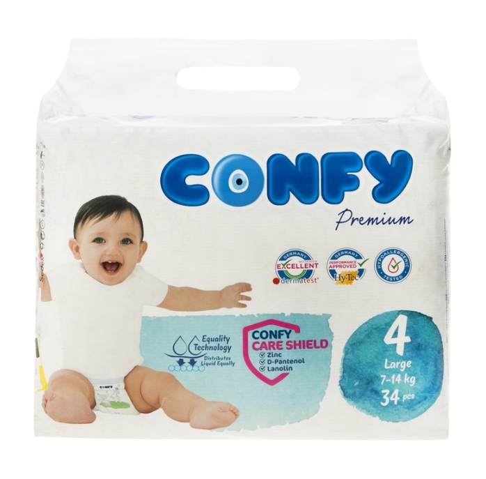 پوشک کودک کانفی سایز ۴ مدل Premium بسته ۳۴ عددی